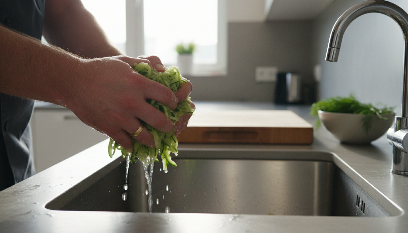 절인 후에는 꼭 손으로 꽉 짜서 물기를 완전히 제거해야 합니다. 이 과정을 생략하면 양념이 희석되고 물이 흥건해져서 오이무침 특유의 감칠맛이 사라집니다. 💡 키친타월로 한 번 더 눌러주면 더욱 깔끔하게 수분이 제거됩니다.