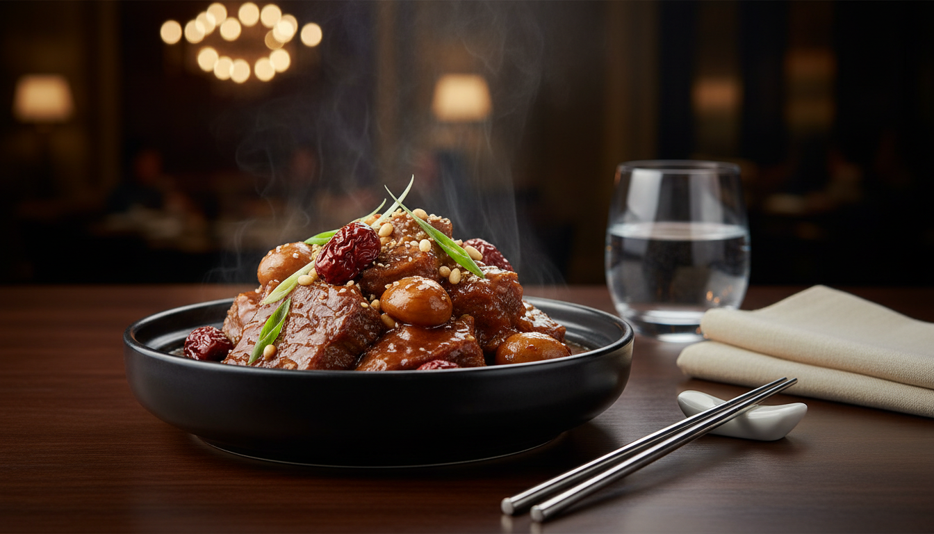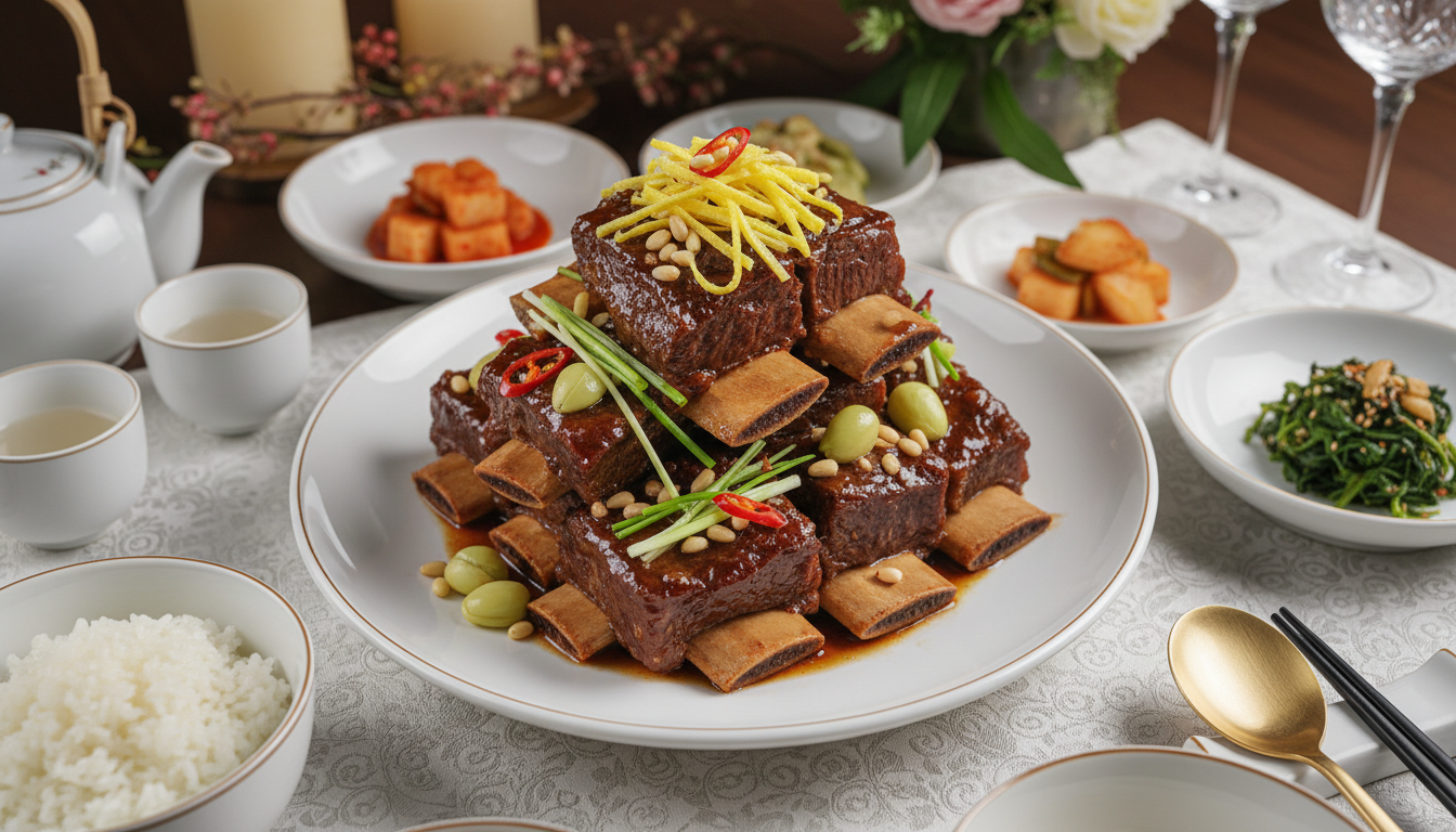 소갈비찜 황금레시피의 마지막 포인트는 바로 플레이팅입니다. 완성된 갈비찜에 은행, 잣, 달걀지단을 고명으로 올리면 명절 상차림에 손색이 없는 비주얼이 완성됩니다. 국물 색이 진하고 윤기가 흐를수록 성공적인 소갈비찜입니다. 📊