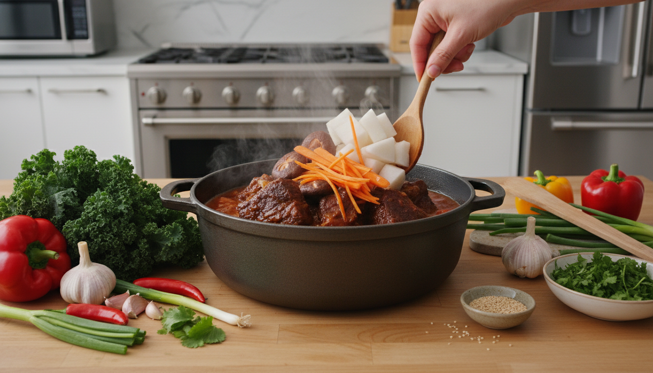 바쁜 날에는 압력솥을 활용하면 조리 시간을 30분 이상 단축할 수 있습니다. 소갈비찜 황금레시피를 압력솥으로 응용할 때는 양념한 갈비를 압력솥에 넣고 고압으로 25분간 조린 뒤, 뚜껑을 열고 채소를 넣어 일반 냄비 상태에서 10분 더 졸이면 됩니다.